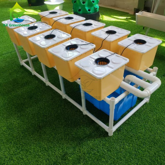 Sistem hidroponik Dutch Bucket dirancang untuk menanam tanaman merambat - tomat, mentimun, terong, dan paprika. Tong Dutch, juga dikenal sebagai tong tanam HL, tersedia dalam warna krem dan hitam, dengan penutup atas putih dan struktur desain yang unik, yang lebih kondusif untuk pertumbuhan akar tanaman. Penutup atas dapat menghalangi cahaya dan mencegah reproduksi alga. Perangkat drainase sifon bawah memungkinkan kelebihan larutan nutrisi mengalir kembali ke kolam larutan nutrisi. Terdapat akuifer 5cm di bagian bawah, yang cocok untuk menanam tomat, mentimun, paprika, terong, dan buah-buahan serta sayuran lainnya.